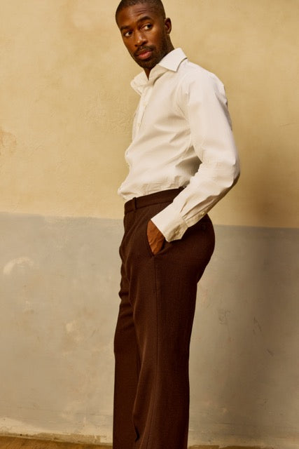 We are reviving vintage menswear with a modern edge. Exaggerated collars, bold leg shapes, and sharp details nod to nostalgic icons, while high end fabrics and refined finishes bring luxury to the raw sprit of American style.